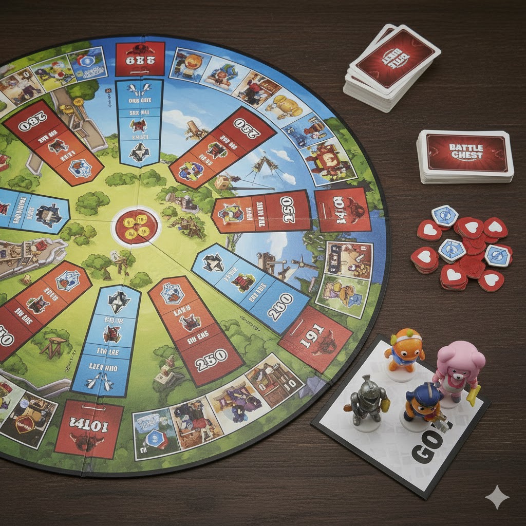 Fortnite Monopol är inte bara en visuell uppdatering av det klassiska spelet; det är en total omvandling av spelmekaniken som prioriterar överlevnad framför ackumulering av rikedom. Den mest fundamentala skillnaden är att pengar helt har ersatts av HP-poäng (Health Points). Om du förlorar alla dina HP är du ute ur spelet, precis som i videospelet. Istället för att köpa fastigheter för att tjäna hyra, gör du anspråk på platser för att tvinga motståndare att betala HP när de landar på dem. Detta skapar en mer aggressiv och snabbfotad spelupplevelse där varje drag kan vara skillnaden mellan liv och död. Spelplanen består av välkända platser från Fortnite-kartan, och målet är att vara den sista spelaren med HP kvar när alla andra har eliminerats.
